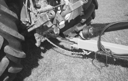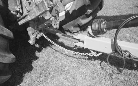 Attach the safety chain around the drawbar
